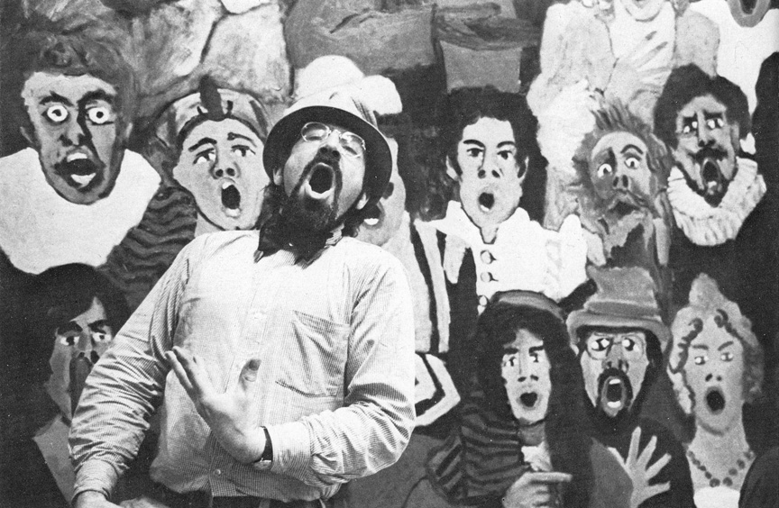 CETA painter Charles Stanley (self-described as il pittore euforico) in front of his mural for the Amato Opera. (photo: Sarah Wells) |